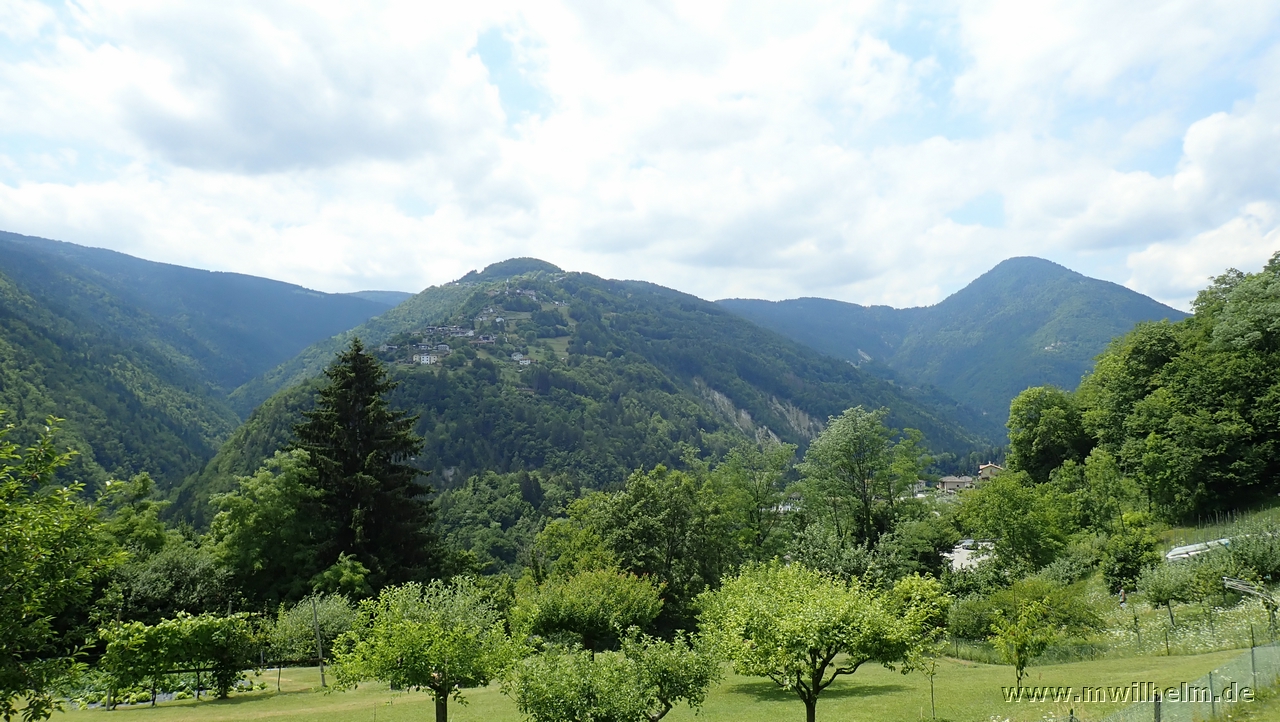 Der Etsch folge ich am nächsten Tag über viele Kilometer ohne Höhenmeter nach Süden. Bozen ist das Ziel. Die Wege sind gut ausgebaut und so kann ich ein bisschen Tempo machen, denn nach und nach wird die Strecken entlang von Etsch und endlosen Feldern mit Apfelbäumen langweilig. Zudem wird es warm. Die Strecke bleibt jedoch nicht den ganzen Tag so einfach zu fahren. Als ich die Stadt Trento passiert habe, verlässt die Via Claudia Augusta die Etsch und nimmt zahlreiche Höhenmeter in Angriff. Der Weg erinnert nunmehr sehr an die alten Pfade, auf denen die Römer zu Fuß unterwegs waren. Es geht steil nach oben. So steil, dass mein Hinterrad durchrutscht. In Levico Terme finde ich eine Übernachtung.