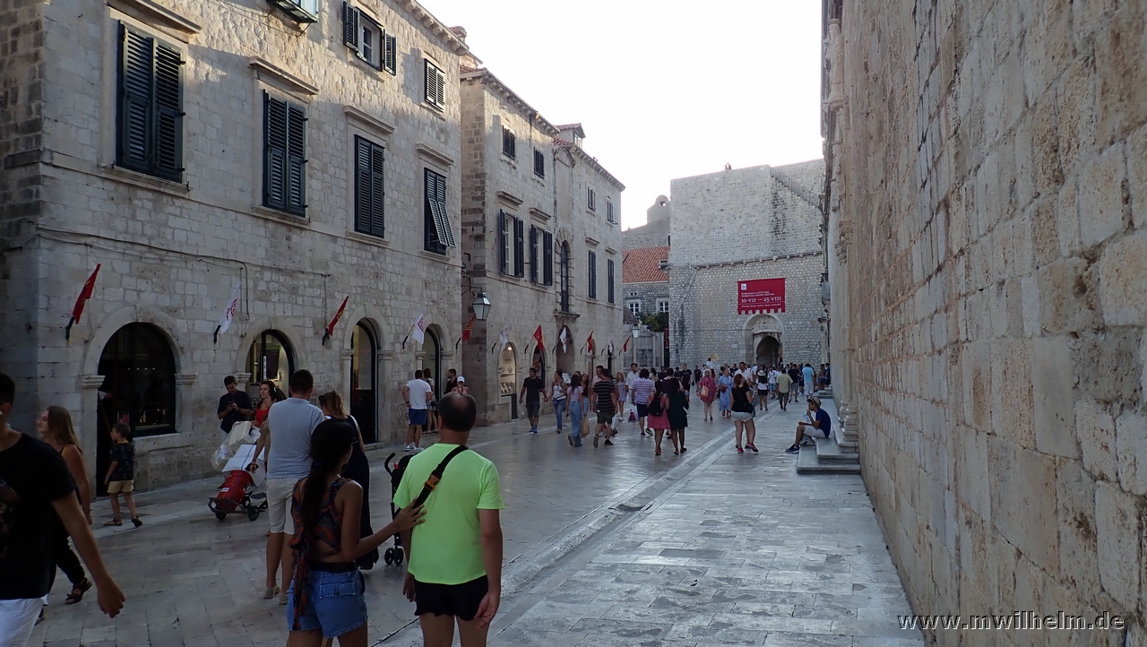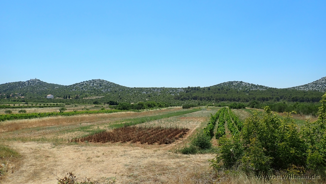 Das ruhige Hochsommerwetter schlägt in der ersten Nacht in einen schweren Sturm um. Plötzlich fliegen in meiner Unterkunft die Gegenstände durch die Wohnung, die Fenster schlagen zu und ich kann gar nicht schnell genug rennen, um in der Ferienwohnung alle Fenster zu schließen. Auch am nächsten Morgen hat sich der Wind nicht gelegt. Vor dem Haus erwischt mich eine Böe und ich verliere beinahe das Gleichgewicht. Meinen Plan entlang der Magistrale 1 zu radeln kann ich keinesfalls umsetzen. Das ist viel zu gefährlich, wenn eine Böe von der Seite kommt und mich zur Fahrbahnmitte drückt, werde ich überfahren. Ich muss somit durch die Berge. Dort wird der Wind allerding noch stärker sein. Das war leider tatsächlich der Fall: Windböen, die mich von vorne erwischen, tun fast so weh. Mit solcher Wucht erfasst mich der Sturm. Kommen die Böen von der Seite drückt es mich mit dem gesamten Gespann ein paar Meter zur Seite. Bevor der kleine Wimpel am Bobby abbricht, baue ich ihn ab. Glücklicherweise verlässt die Route irgendwann die Berge und führt durch windgeschützte Täler. Am Abend erreiche ich die Stadt Otocac.
