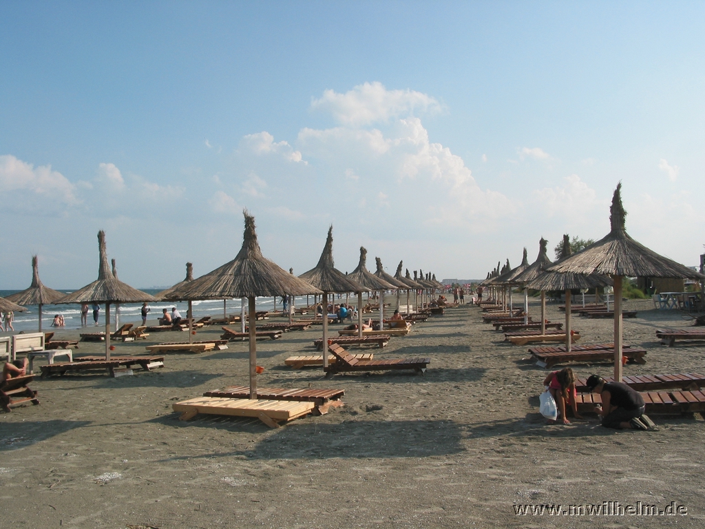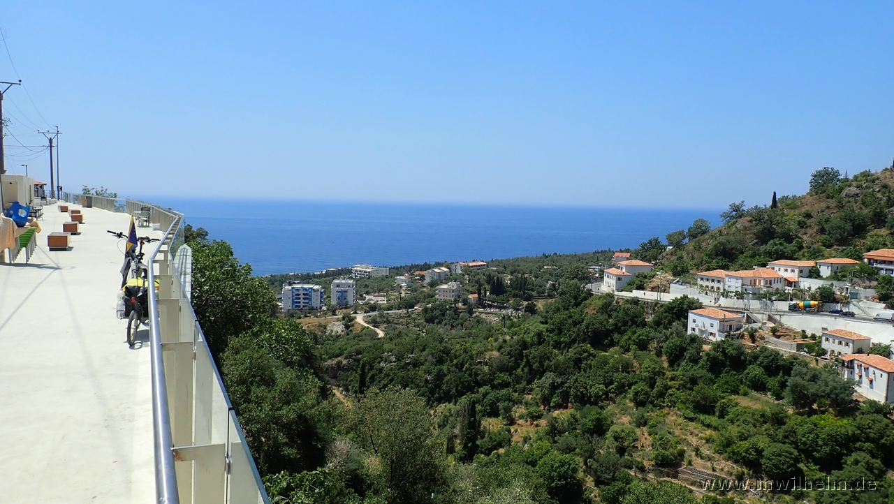 Dem Sturm folgen Hitze und Trockenheit. Tagsüber erreichen die Temperaturen im Schatten inzwischen weit über 30 Grad Celsius. Insgesamt transportiere ich an Fahrrad und Bobby 5 Liter Wasser, da ich nicht erwarten kann in den Bergen ausreichend Trinkwasser zu finden. Der Weg führt durch eine extrem trockene Landschaft. Nur Sonne und Hitze. Kein Schatten. Und selbst Wind kühlt nicht, sondern fühlt sich an wie ein Heißluftgebläse. Mein Wasservorrat verdunstet förmlich. Ich mache immer wieder einen kurzen Stopp um zu trinken. Zum Glück habe ich viel Wasser dabei. Hier in der einsamen Gegend gibt es keinen Supermarkt an dem man mal kurz anhalten kann, um Wasser zu kaufen. Am Nachmittag erreiche ich dann wieder die Adria. Die Berge liegen hinter mir. Der Unterschied ist gewaltig. Während ich noch vor einer Stunde in glühender Hitze in der Prärie unterwegs war und ab und an mal ein Häuschen an der Straße stand, gibt es hier nun Bierstände, Würstchenbuden, teure Autos, Jachten und Luxus im Überfluss. Tja, so läuft es wohl auf dieser Welt. Mich beschäftigt der unglaublich krasse Gegensatz zwischen arm und reich noch eine ganze Weile. Ich bin überzeugt, dass manchmal nötig ist, bewusst zu verzichten, um erkennen zu können, was man eigentlich hat.