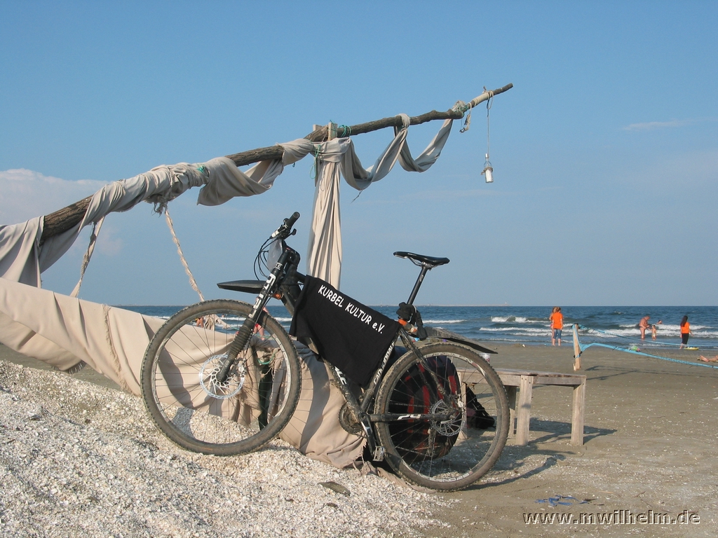 Am Abend des 07. Juli erreiche ich nach einer anstrengenden Etappe Lido di Jesolo. Ich bin an der Adria. Das nasskalte und windige Wetter, dass mich nördlich der Alpen begleitet hat, ist schon seit ein paar Tagen Geschichte. Inzwischen ist es sonnig und heiß. Bis hier her bin ich in 8 Tagen knapp 1.000 Kilometer gefahren und habe die Alpen überquert.