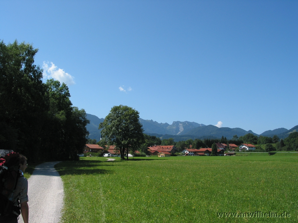 Besonders gefallen hat mir bei diesem Abschnitt im Voralpenland das allmähliche Näherkommen an die Berge. Von München aus ist wirklich noch nicht viel zu sehen von den Bergen, aber mit jedem Tag kommt man den Bergen ein gutes Stück näher. Auch zum Eingewöhnen ist das sehr vorteilhaft. So treffen einen die ersten richtigen Höhenmeter nicht mehr ganz so unvorbereitet.