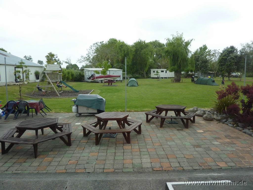 Wir haben uns noch einen Tag Erholung vom Waikaremoana Track gegönnt, bevor wir weitergefahren sind nach Taupo. Das Wetter ist ziemlich wechselhaft. Mal hat es 25 Grad und viel Sonne, am nächsten Tag ist Regen angesagt. In Taupo machen wir deswegen einen Stopp, da es hier neben des Tongario-Crossing auch noch ein paar interessante Geothermie-Felder gibt. Die schauen wir uns am ersten Tag genauer an. Überall in dem Geothermie-Feld, dass die Kiwis nachvollziehbar „Craters of the moon“ nennen dampft, blubbert und brodelt es. Es riecht etwas muffig. So kann man sich irgendwie schon die Reise ins Innere der Erde vorstellen. Zahlreiche Hinweisschilder warnen ausdrücklich davor in den heißen Dampf zu fassen oder gar die markierten Wege zu verfassen. Ja klar, mit den üblichen Flip Flops wäre das sicher nicht so gut, mal irgendwo hinzutreten, wo es heiß herauskommt. Das Geothermie-Kraftwerk in der Nähe können wir leider nicht anschauen. Da ist niemand. Das wird komplett ferngesteuert. Schade.