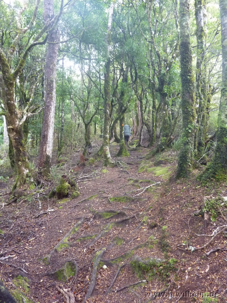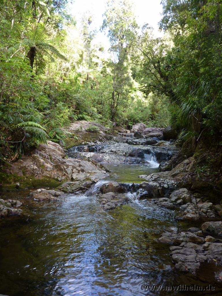 Der Weg führt hinab ins Tal und das Wetter wurde besser. So konnten wir auf der weiteren Wanderung zahlreiche wunderschöne Wasserfälle und andere Naturschauspiele bewundern. Nachts hat nur mal ein völlig liebestrunkener Kiwi-Vogel genervt. Die Jungs können während der Balzzeit wirklich sehr laut und sehr leidenschaftlich auf ihr einsames Herz aufmerksam machen. Sehr zum Leidwesen lärmgeplagter Großstädter, die einfach mal Nachts ihre Ruhe haben wollen…