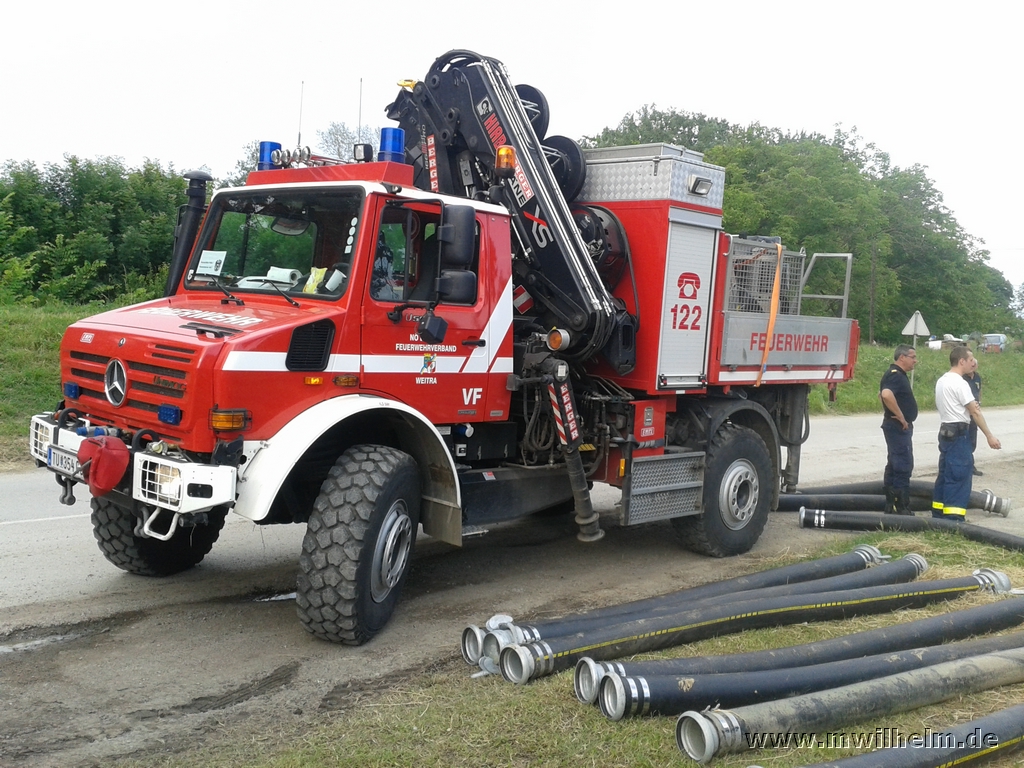 Als wir im Schadensgebiet eintreffen wird das Ausmaß der Überflutungen sichtbar. Ich bin ziemlich überrascht, wie weitläufig die Überflutungen sind. Hier werden wir sehr lange pumpen müssen. Das Land ist sehr flach. Und das Wasser hat sich über große Flächen verteilt. Es werden wohl an einigen Stellen die Deiche zur Save geöffnet, damit das Hochwasser schneller in die Save zurück fließen kann. Aber deren Wasserstand muss eben auch erst mal noch etwas weiter fallen.